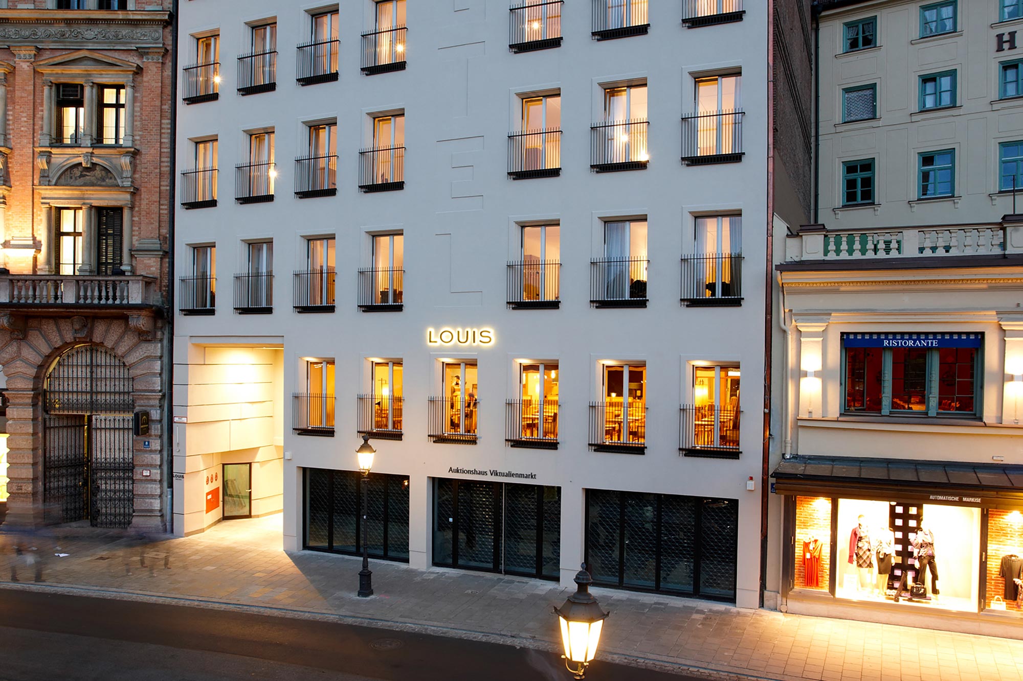 Für München ist das Louis so etwas wie ein Symbol: Es ist ein deutsches Design-Hotel, welches dunkles germanisches Drama mit etwas Warmem, Sonnigem, fast Mediterranem tauscht. Den Charakter des Boutique-Hotels LOUIS am Viktualienmarkt bestimmt eine Mischung aus Moderne und zeitloser Eleganz. Die 72 individuell eingerichteten Zimmer sind mit handgefertigen Möbeln aus heimischen Hölzern, Naturstein und italienischen Stoffen ausgestattet. Das Restaurant EMIKO hat sich der modernen japanischen Küche verschrieben. Auch die Cocktail-Kreationen in der gleichnamigen Bar zeichnen sich durch eine asiatische Note aus. Vom Marienplatz mit dem Rathaus-Glockenspiel trennen das Hotel lediglich 200 Meter. Das Hofbräuhaus und die Bayerische Staatsoper liegen 500 Meter entfernt. Für die 4,5 Kilometer lange Strecke zum Englischen Garten nutzt man am besten den öffentlichen Nahverkehr.